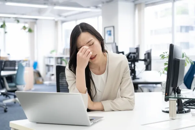 スマホやPCを長時間見続け、目を酷使することは、大きな負担となります。ドライアイや眼精疲労はもちろん、血行不良と睡眠不足によるまぶたのむくみなどにもつながります。姿勢や表情、ピント調節機能にも悪い影響があるため、長時間に及ぶスマホやPCはなるべく避けましょう。